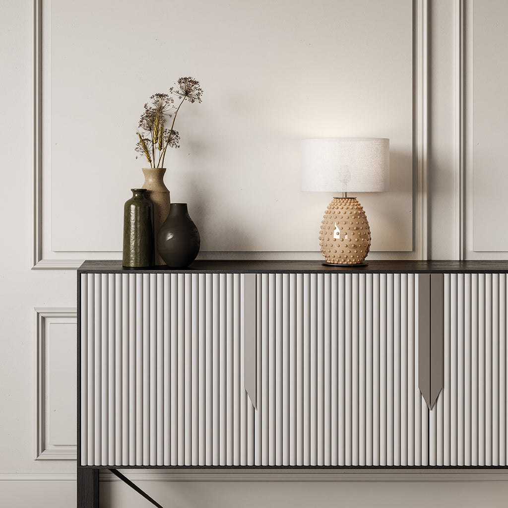 Das Esszimmer bekommt mit einer Tischleuchte z.B. auf dem Sideboard einen weiteren Glanzpunkt und zusätzliches Licht.